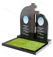 - иногда ставят семейный памятник на едином постаменте - в виде двух объединенных стел, возможно объединенных крестом или просто слитых. Оригинальное решение - контрастный вариант из двух типов камня: мрамора или гранита.